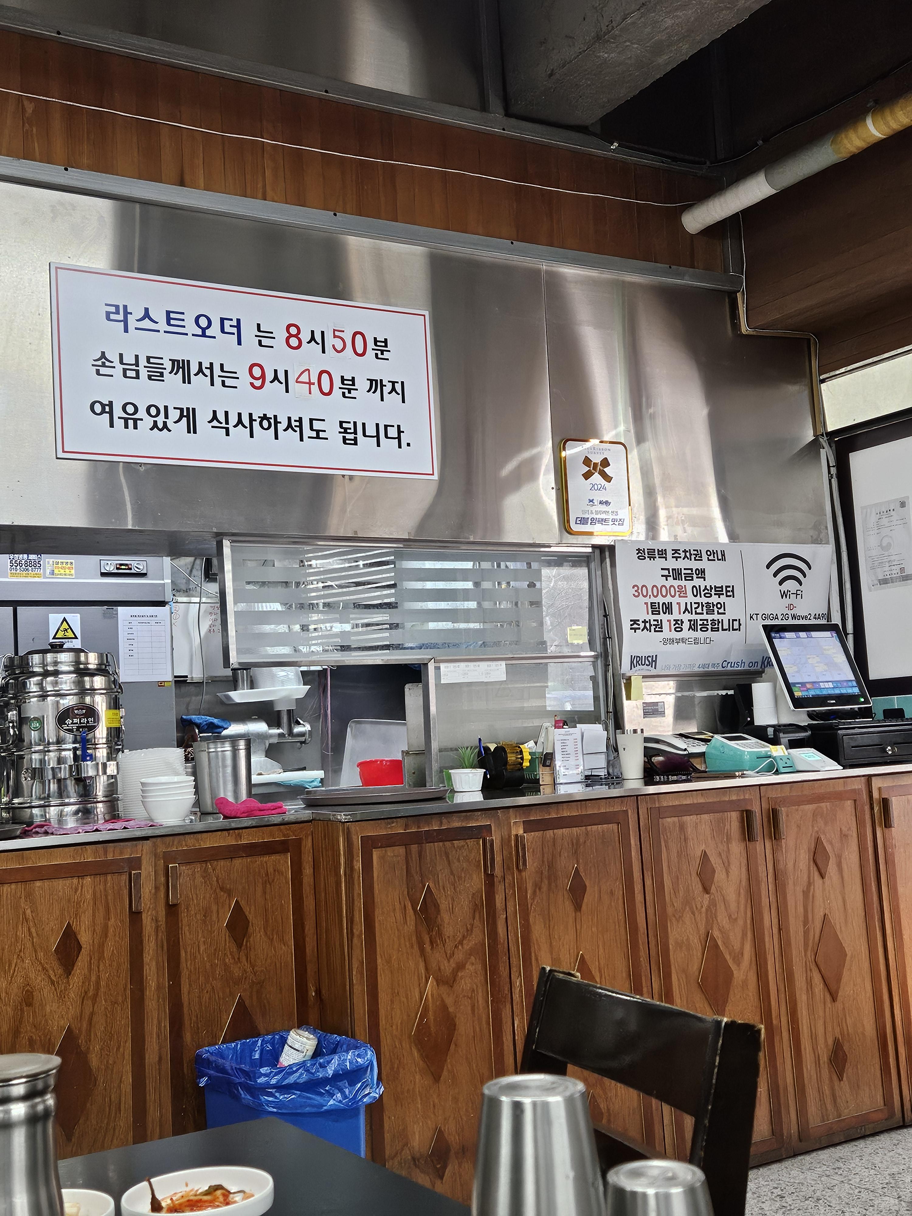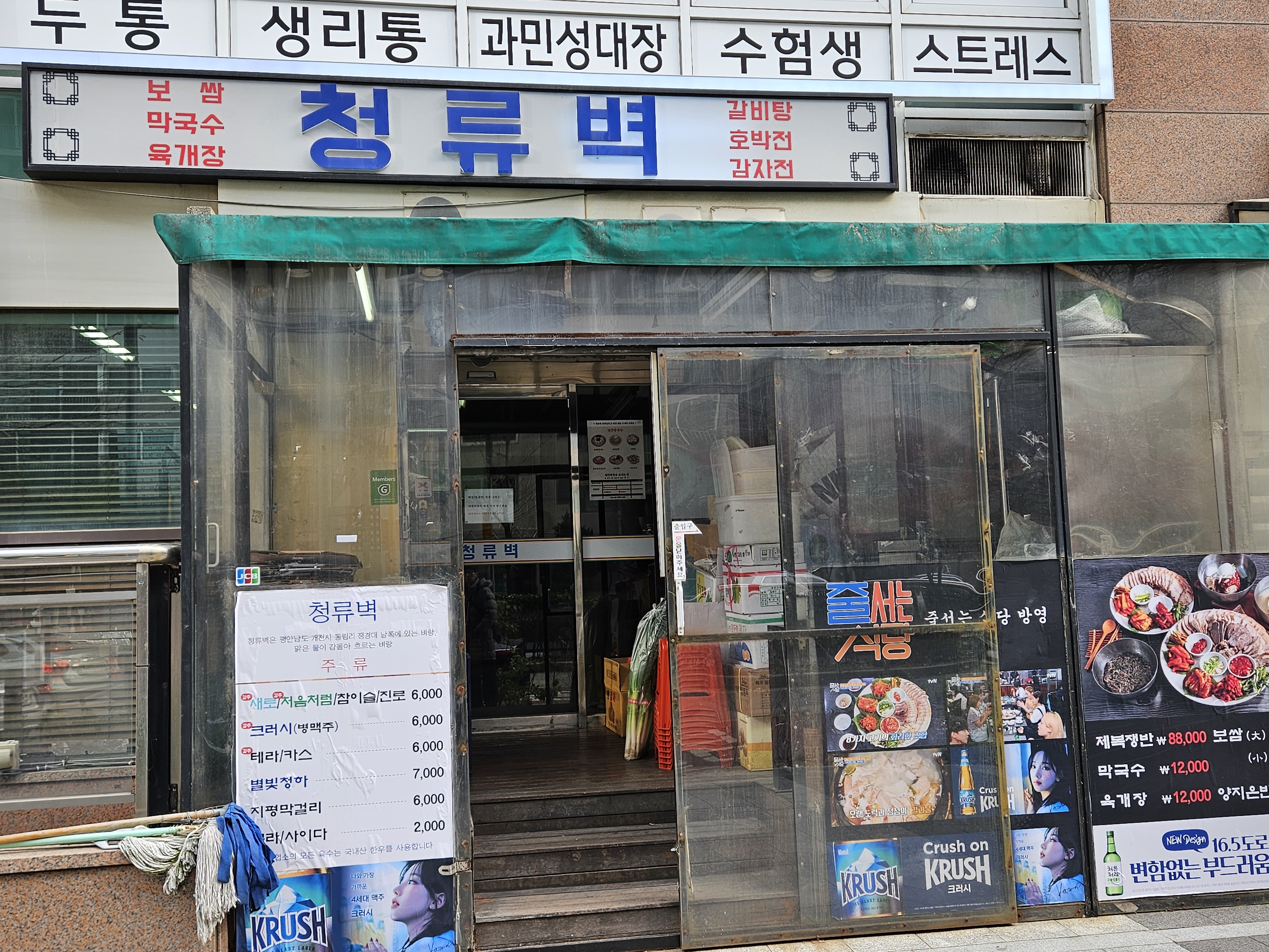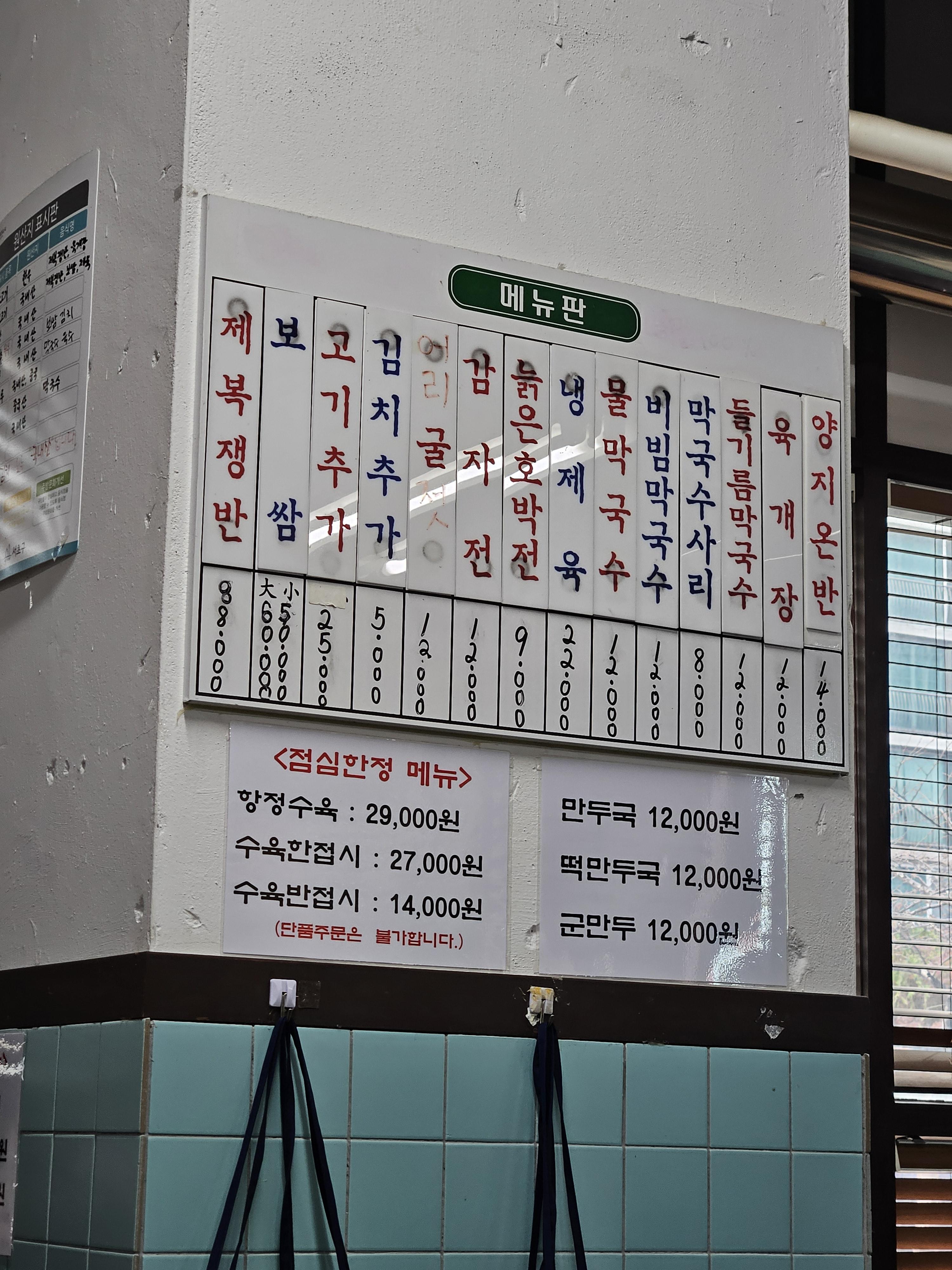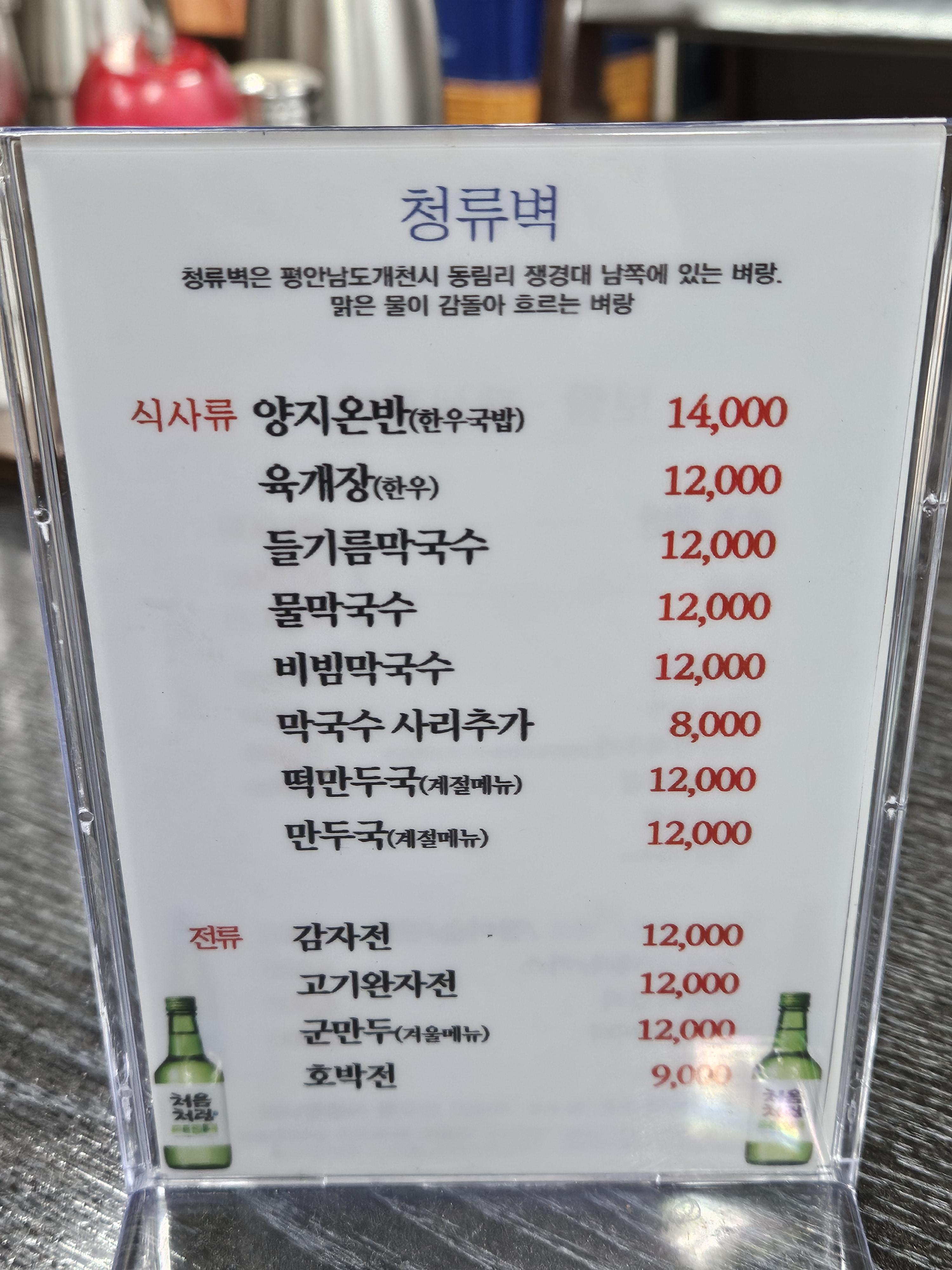 청류벽 메뉴판