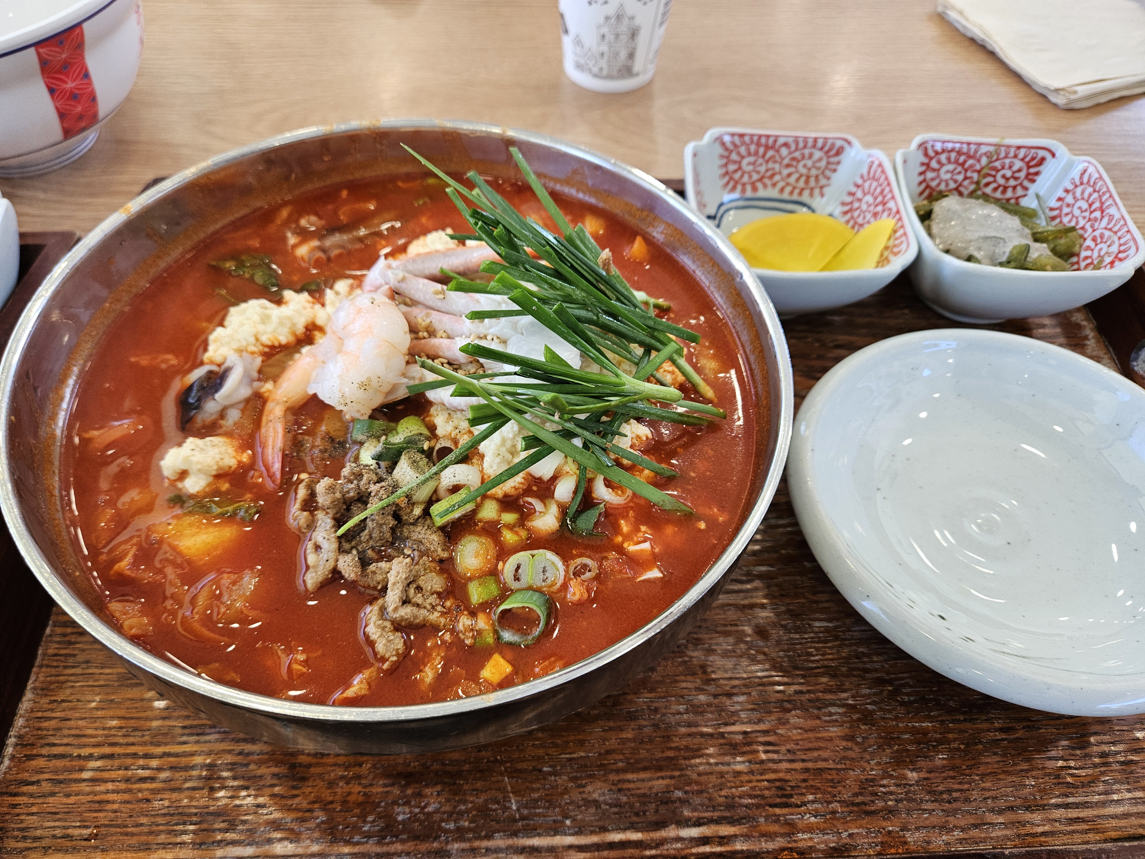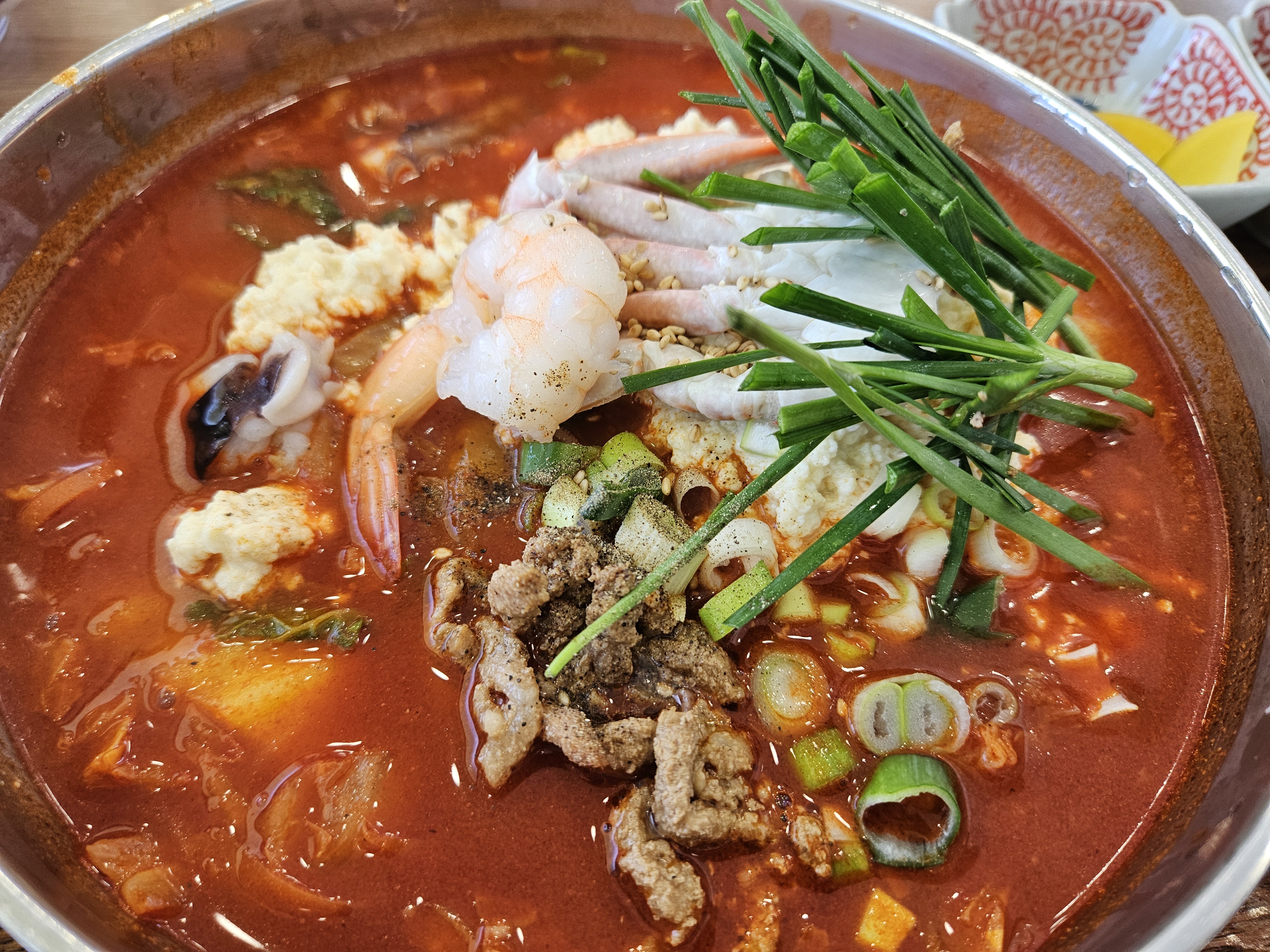순두부와 해산물, 고기가 가득했고 엄청 자극적이지 않고 부드럽게 매우면서 깔끔한 맛이었다.
