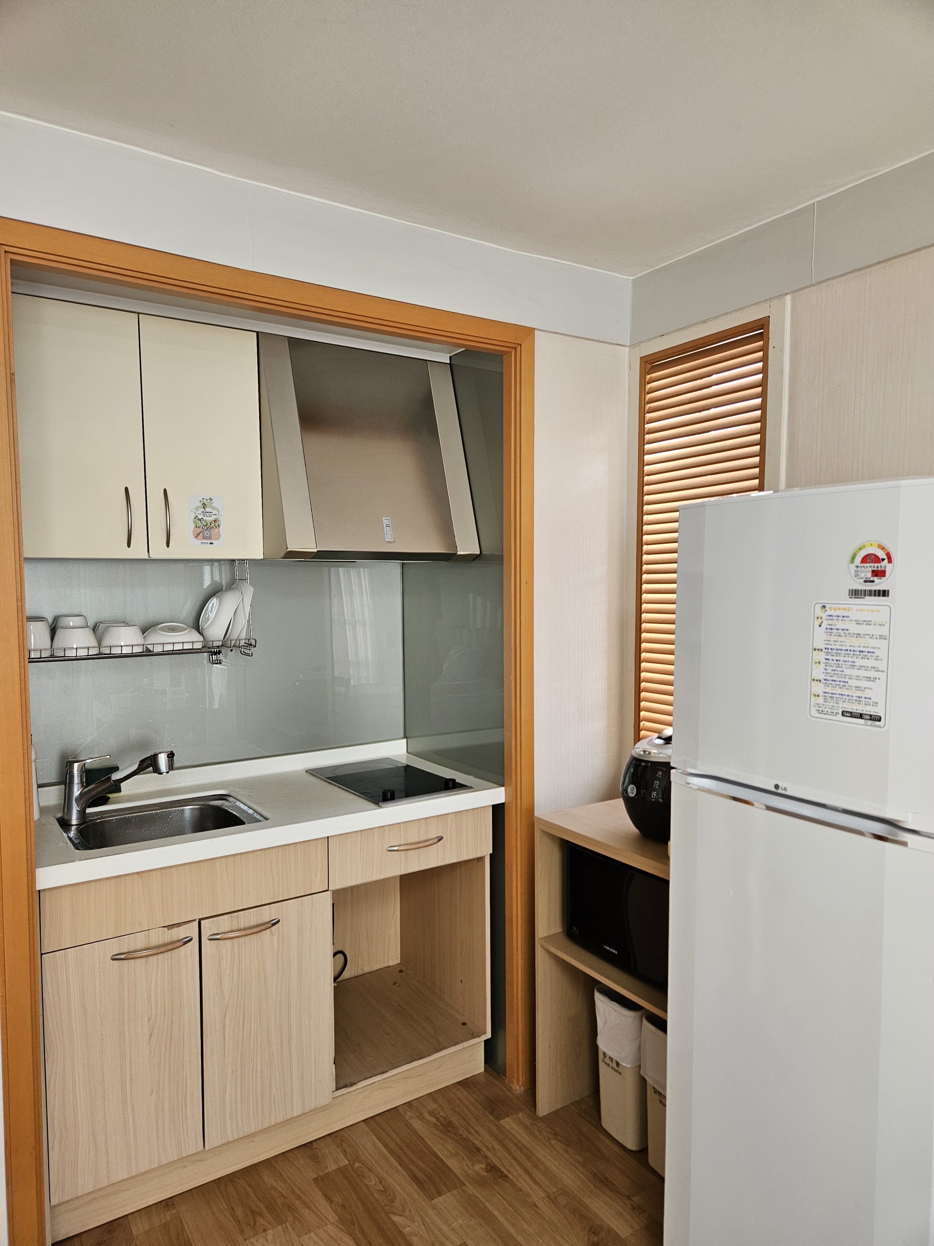 냉장고도 제법 큰사이즈로 있었고 접시, 밥솥, 전자렌지가 있어서 편리했어요.