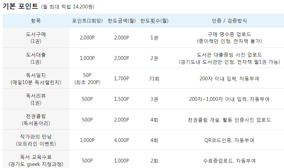 독서포인트 적립 기준
