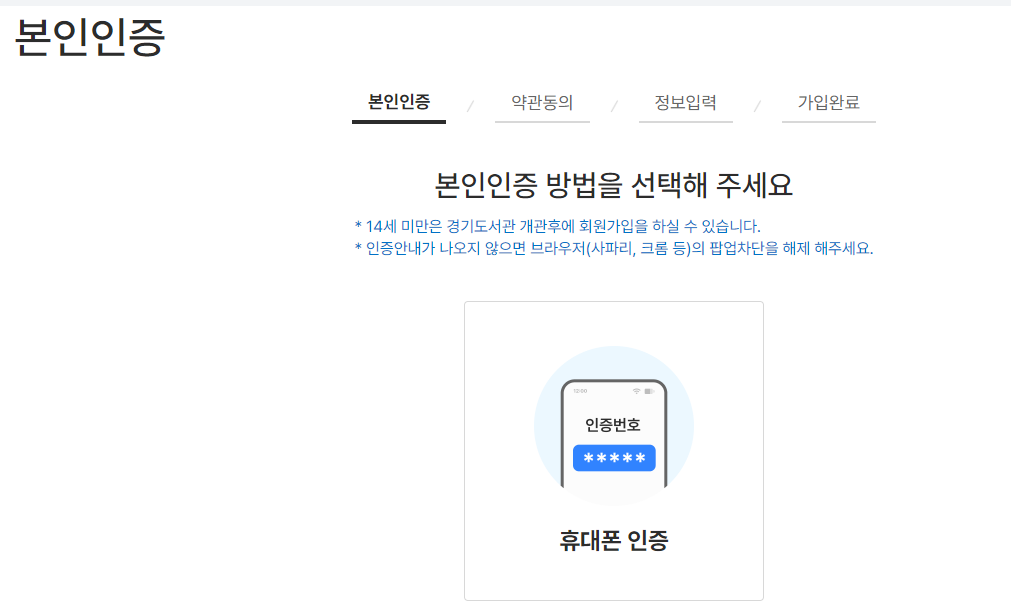 본인인증-약관동의-정보입력의 과정을 마치면 가입완료가 됩니다.