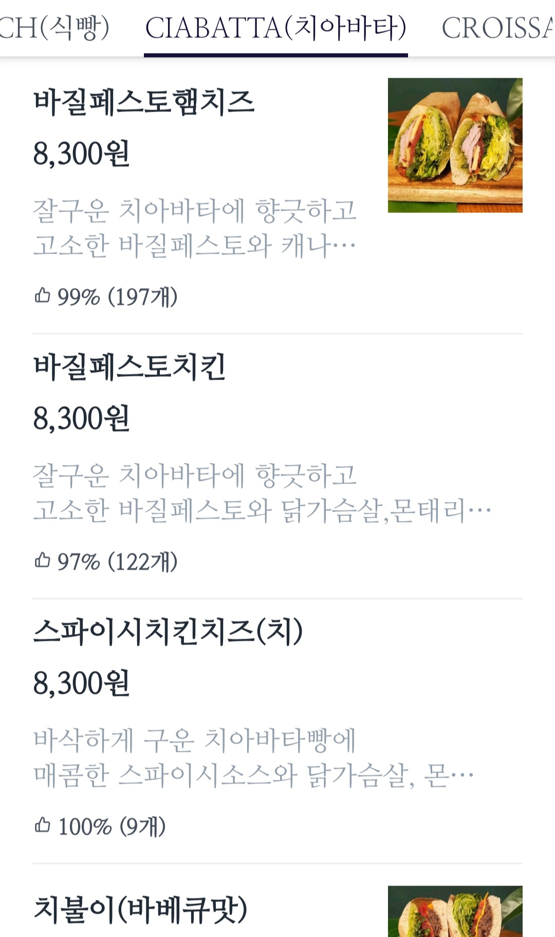 식빵, 치아바타, 크로와상으로 만든 샌드위치도 팔고
