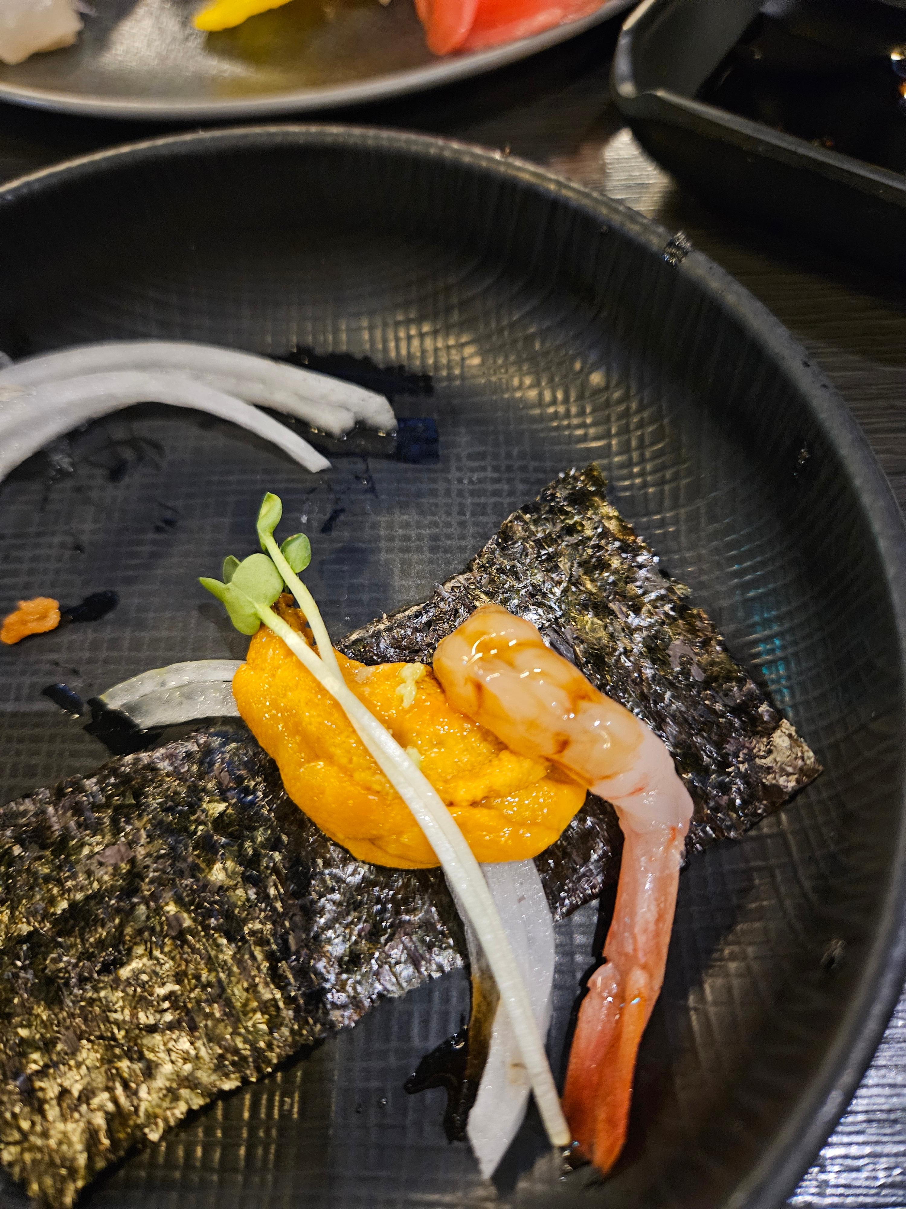 가성비 괜찮다는 생각이 들었다. 제법 우니와 단새우가 많이 들어있어서 둘이 안주로 적당히 즐길 수 있었다.
