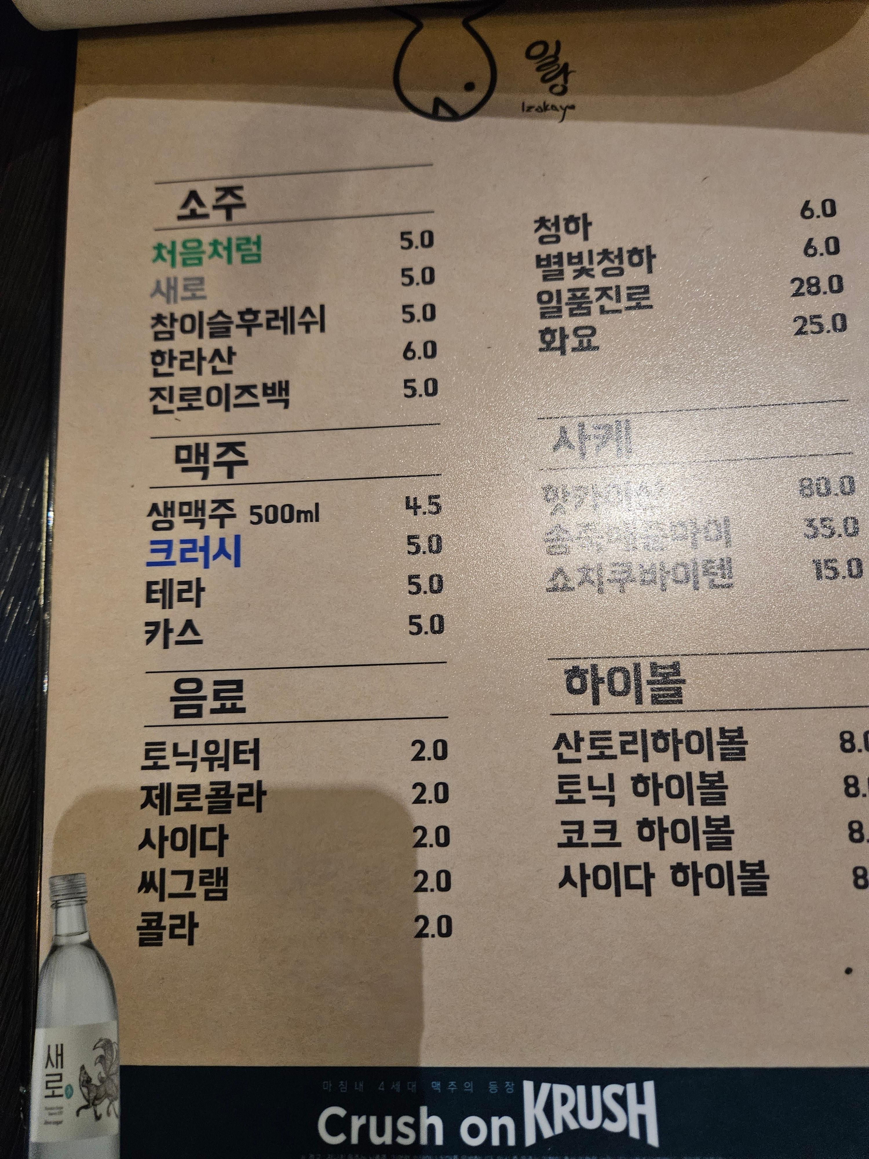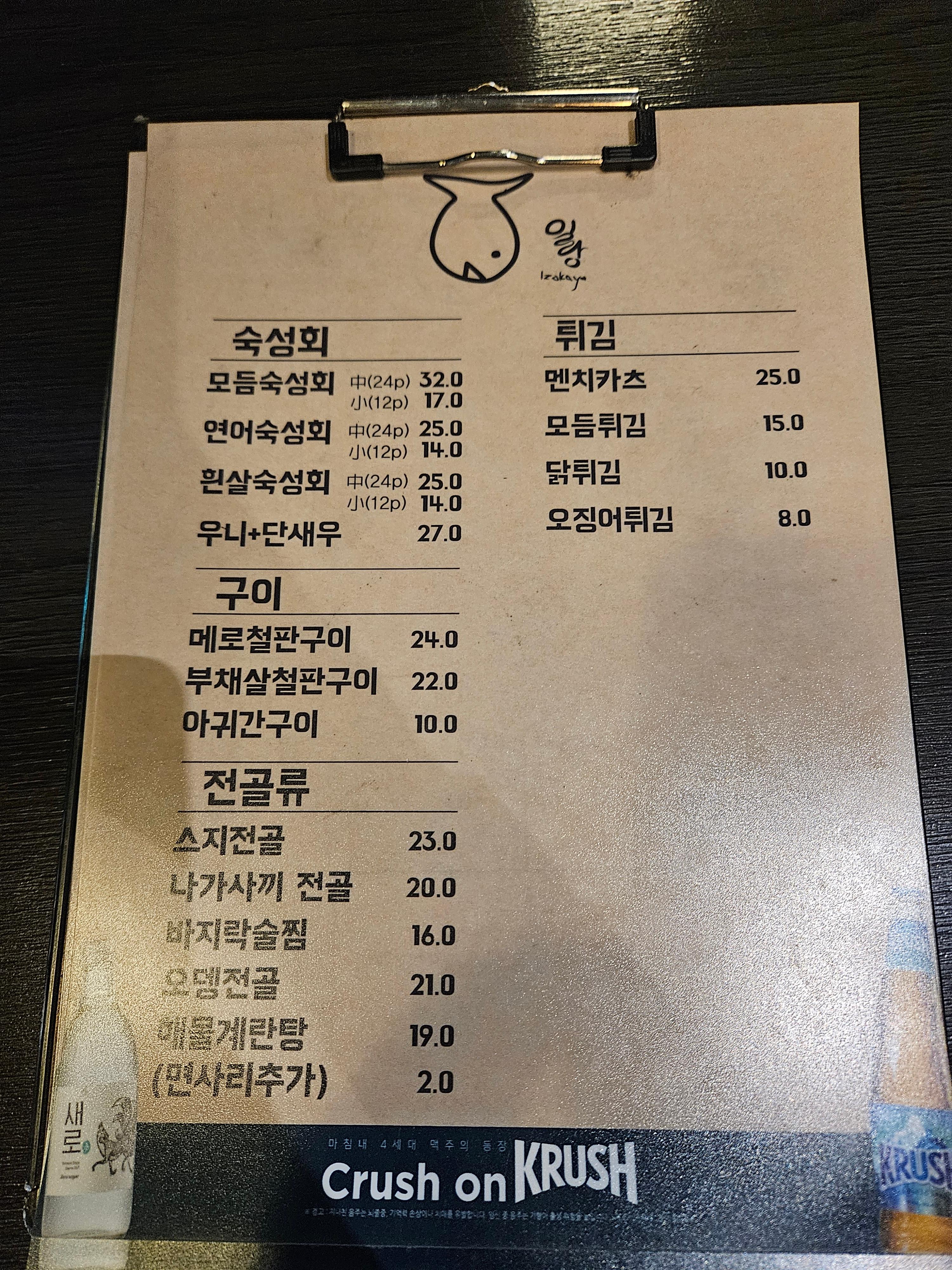 예전부터 와보고 싶었는데 손님이 많아서 포기했었던 이자카야 '일랑'을 드디어 와봤다. 마음에 들어서 기록을 해보기로 한다.