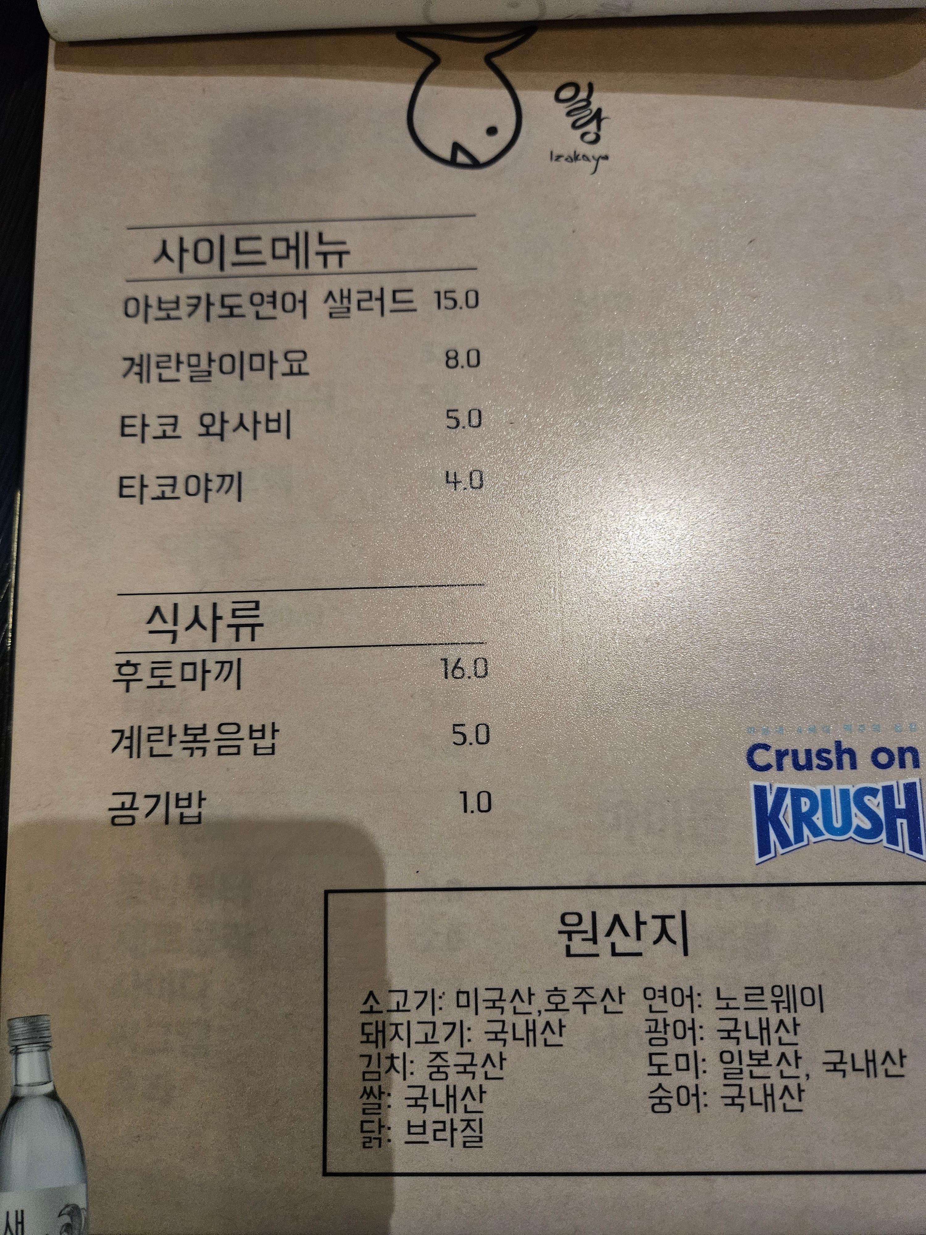 그리고 제일 좋았던 점은 식사류에 후토마끼가 있다는거였다. 빈 속에 술을 채우기 전에 든든하게 속을 채울 수 있다.