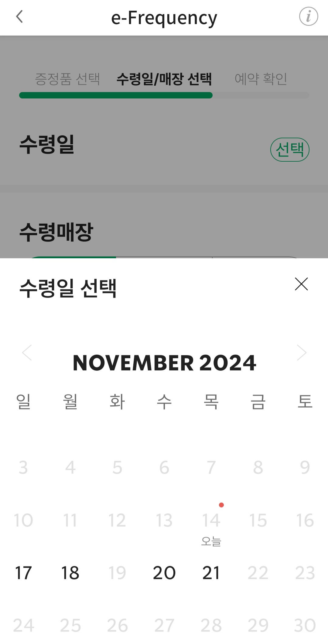 예약한 날짜에 바코드가 활성되기 때문에 해당일에 해당 매장에 방문하면 돼요
