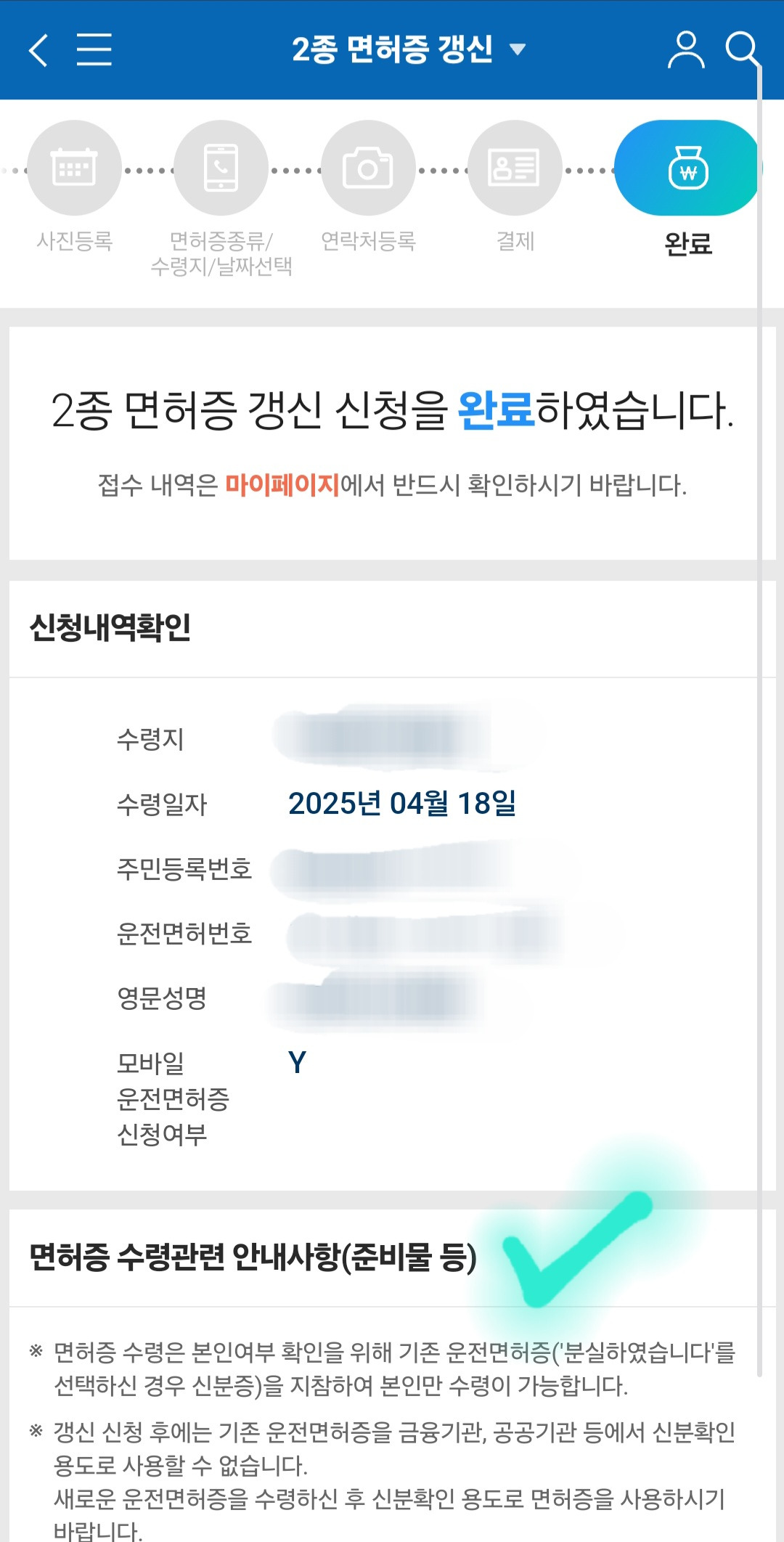 이제야 사진을 찍고 그날 바로 온라인으로 갱신 신청을 해서 한큐에 끝내버렸다