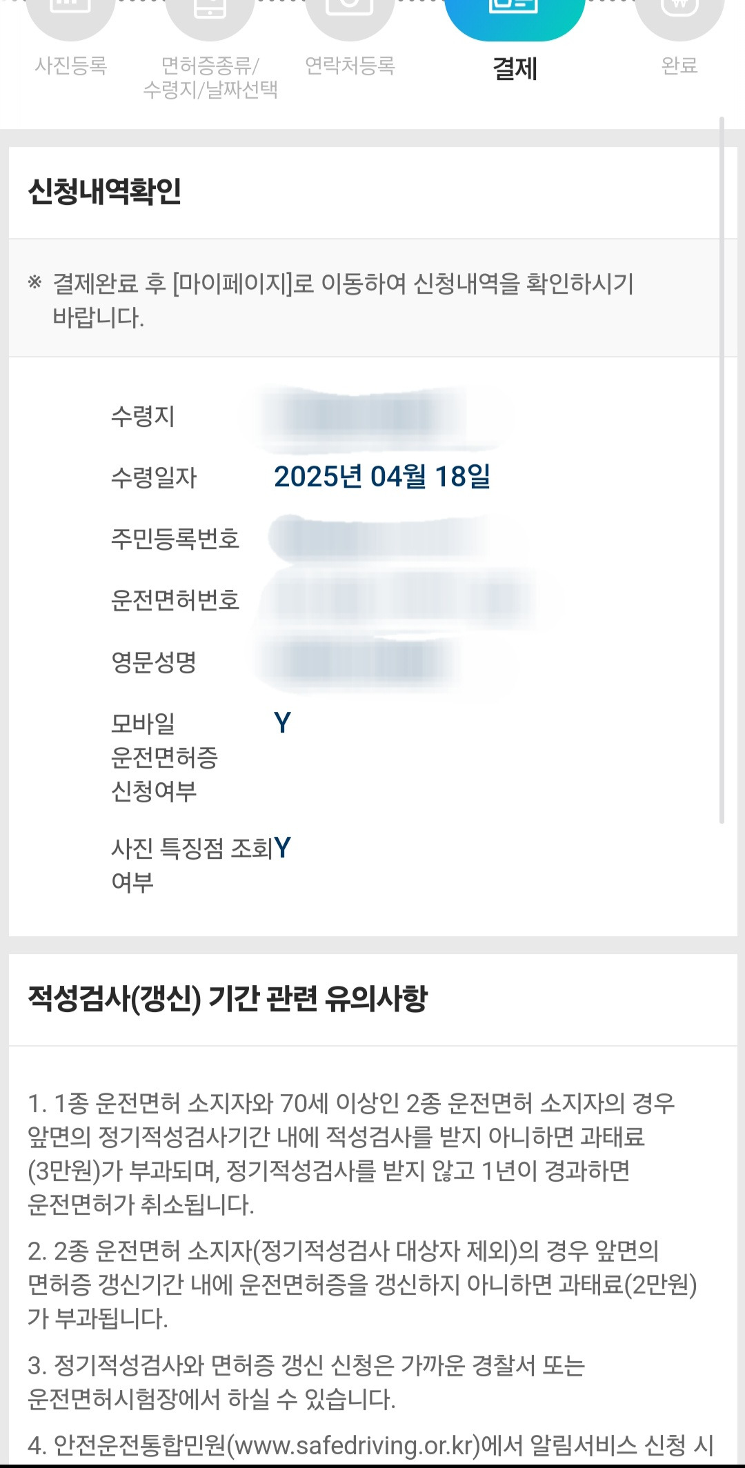 5. 운전면허증 수령 시 : 기존 운전면허증 필수 지참