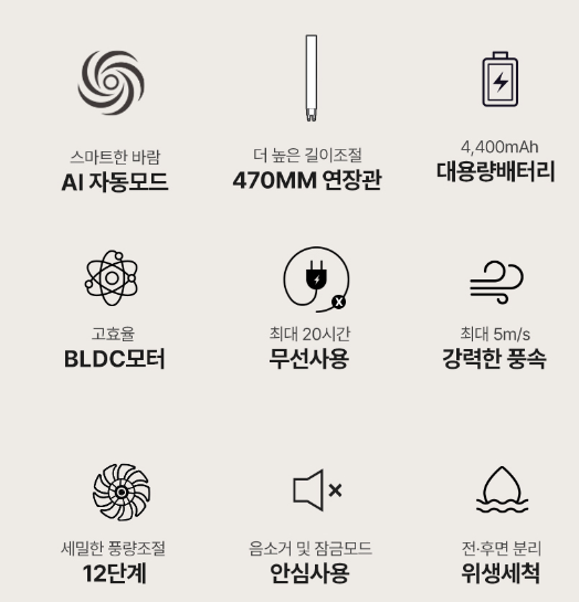 상하/좌우로도 넓게 회전이 가능해서 사각지대 없이 바람이 곳곳에 닿아서 에어컨과 동시에 사용하면 공기를 순환시켜서 에어컨 효율 극대화로 전기료도 절감 가능할거 같아요.