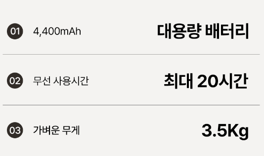 1. 무선(최대20시간)으로 유선으로 사용가능
