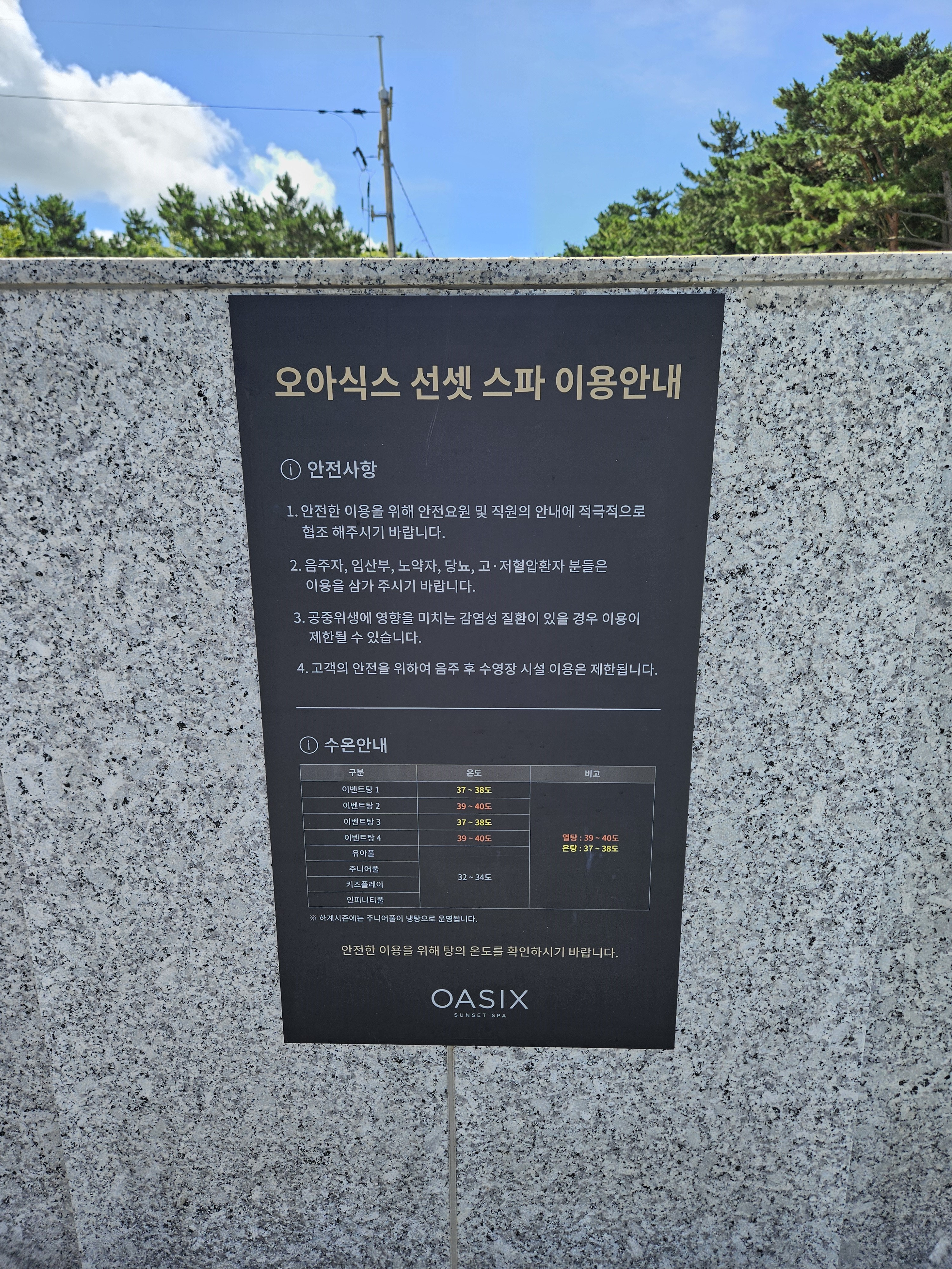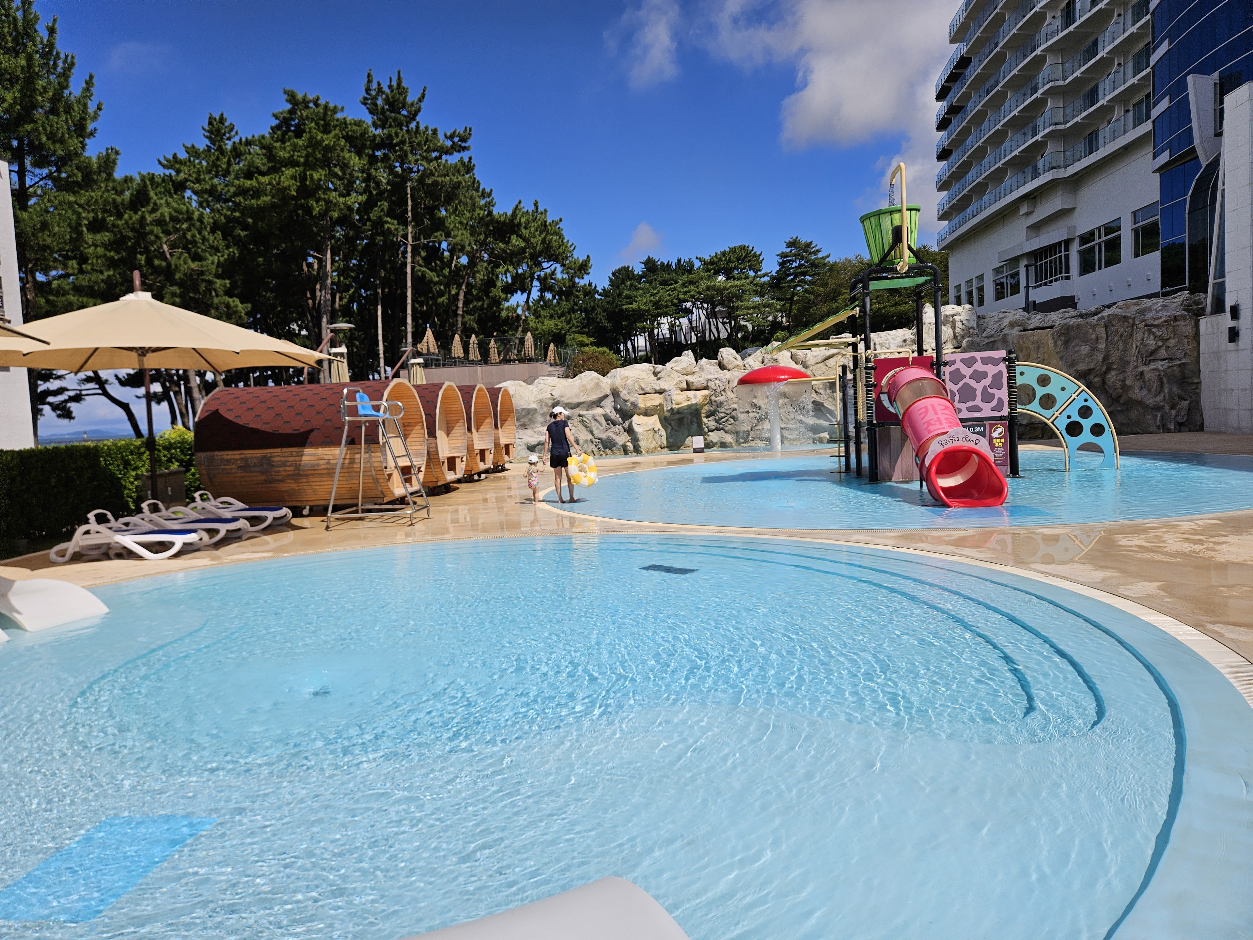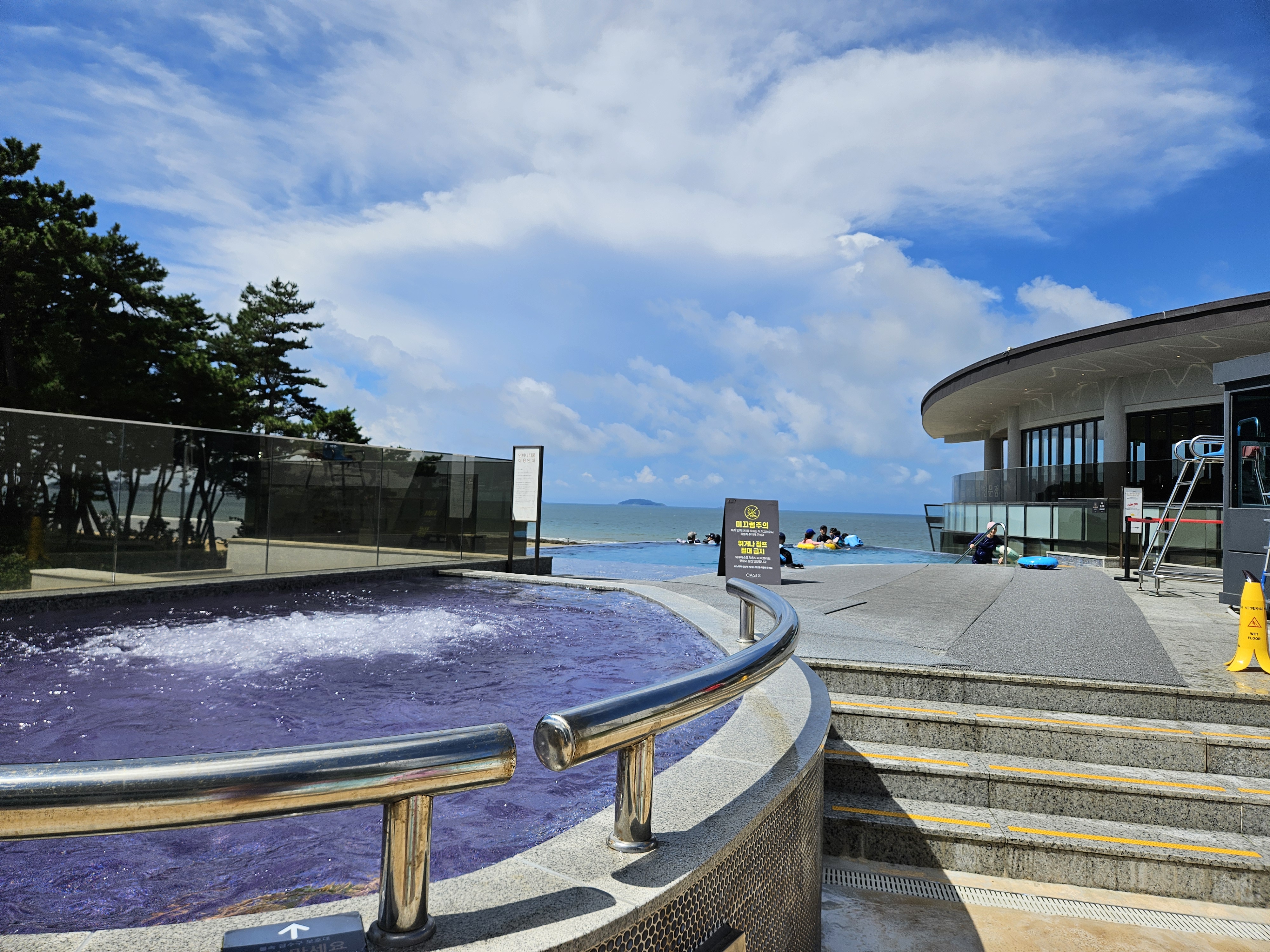 온천풀 종류가 많아서 흥미로웠고 키즈풀에 슬라이드도 있고 은근 알차더라고요. 인피니티풀에서는 바다가 시원하게 펼쳐져서 선셋을 즐기기에도 좋았어요.