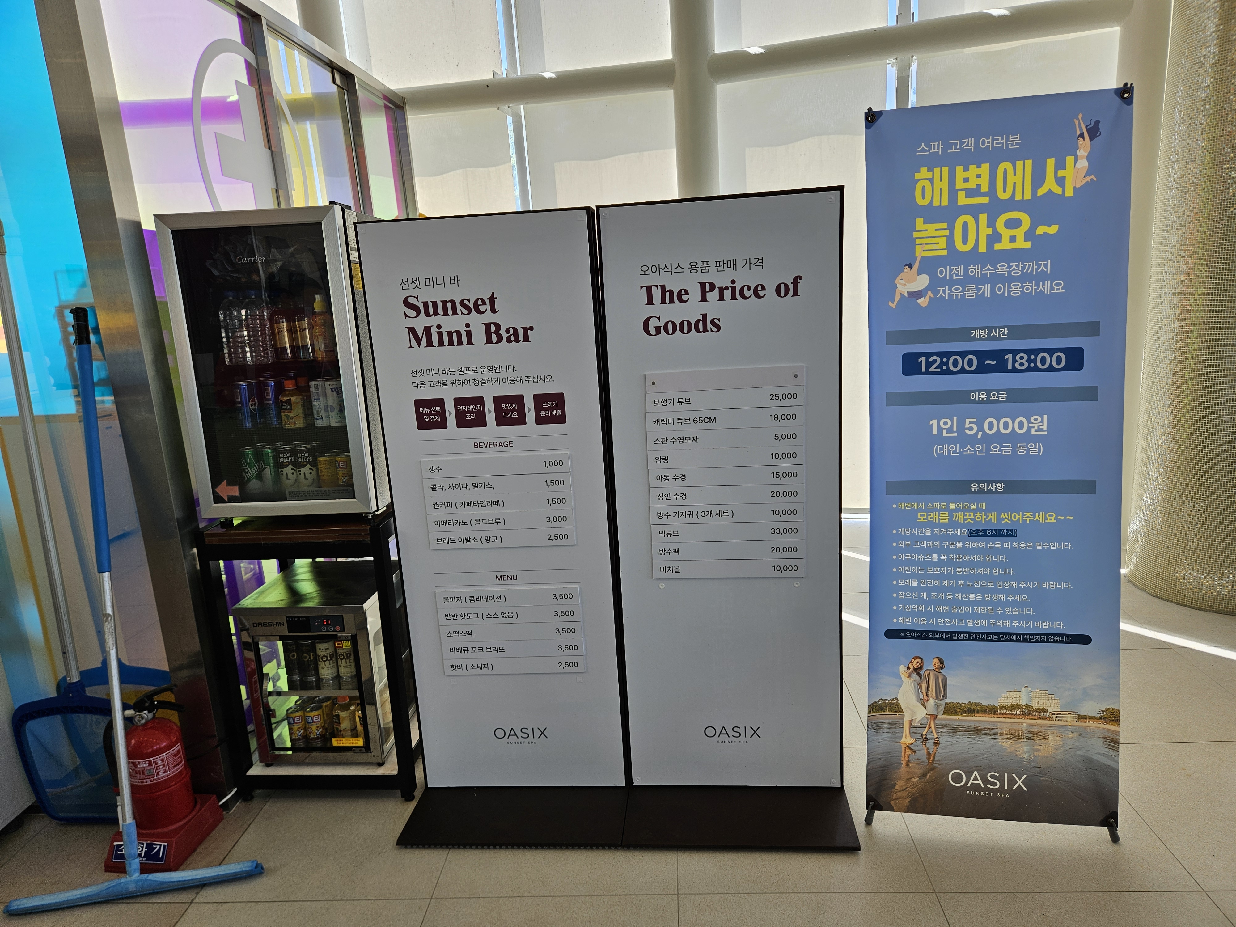 튜브, 수영모, 수경 등등 용품들을 구입할 수 있는 곳도 있고, 간단한 스낵을 즐길 수 있는 미니바가 있어요.