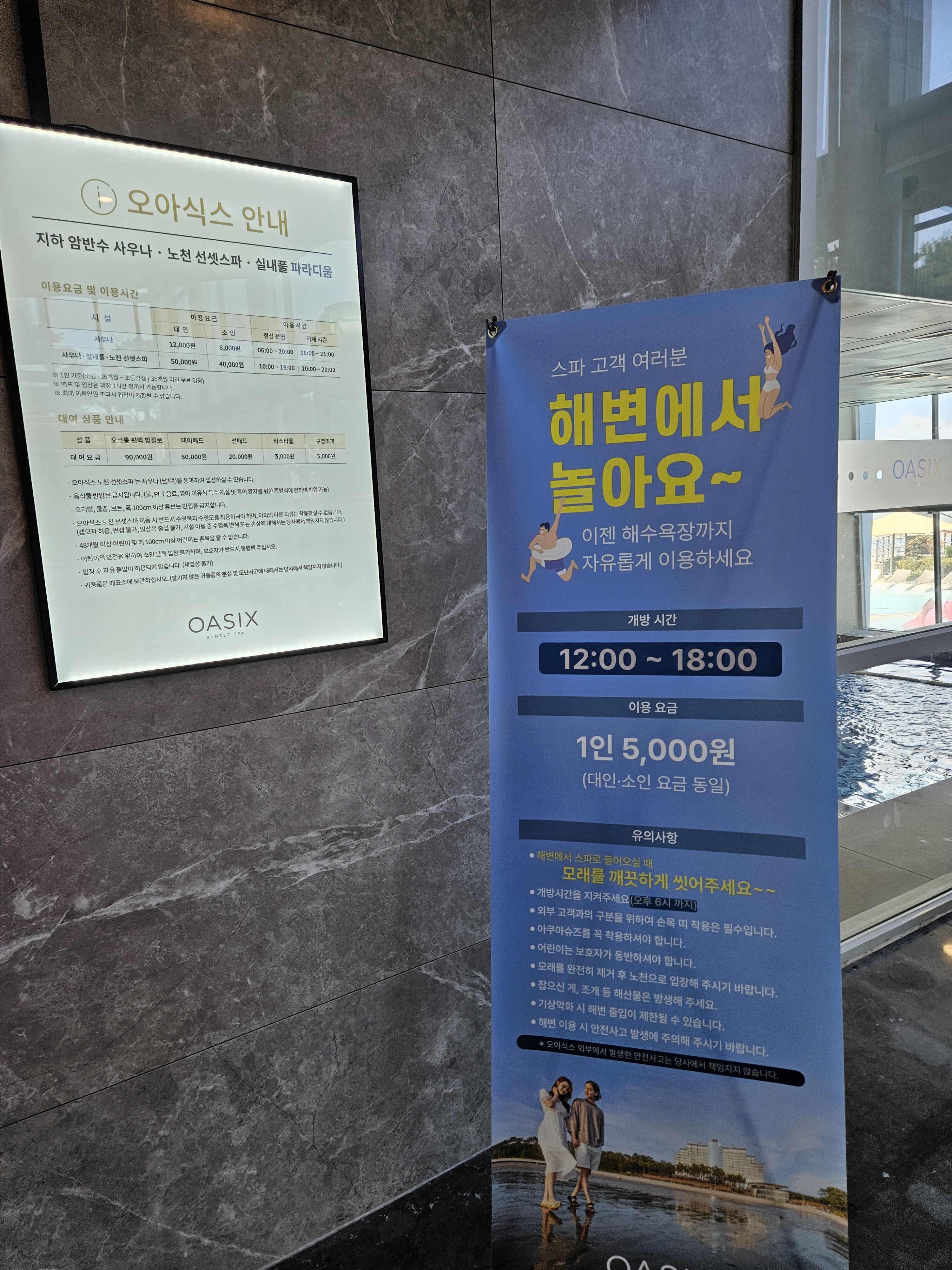 수영을 좋아하는 우리 가족은 숙소를 체크아웃 하고 아일랜드 리솜 수영장 '오아식스'로 향했어요. 예전에도 와본 적이 있었는데 그 때는 겨울이라서 야외 스파를 즐기지 못해 아쉬웠는데 이번에는 야무지게 즐기고 왔답니다.