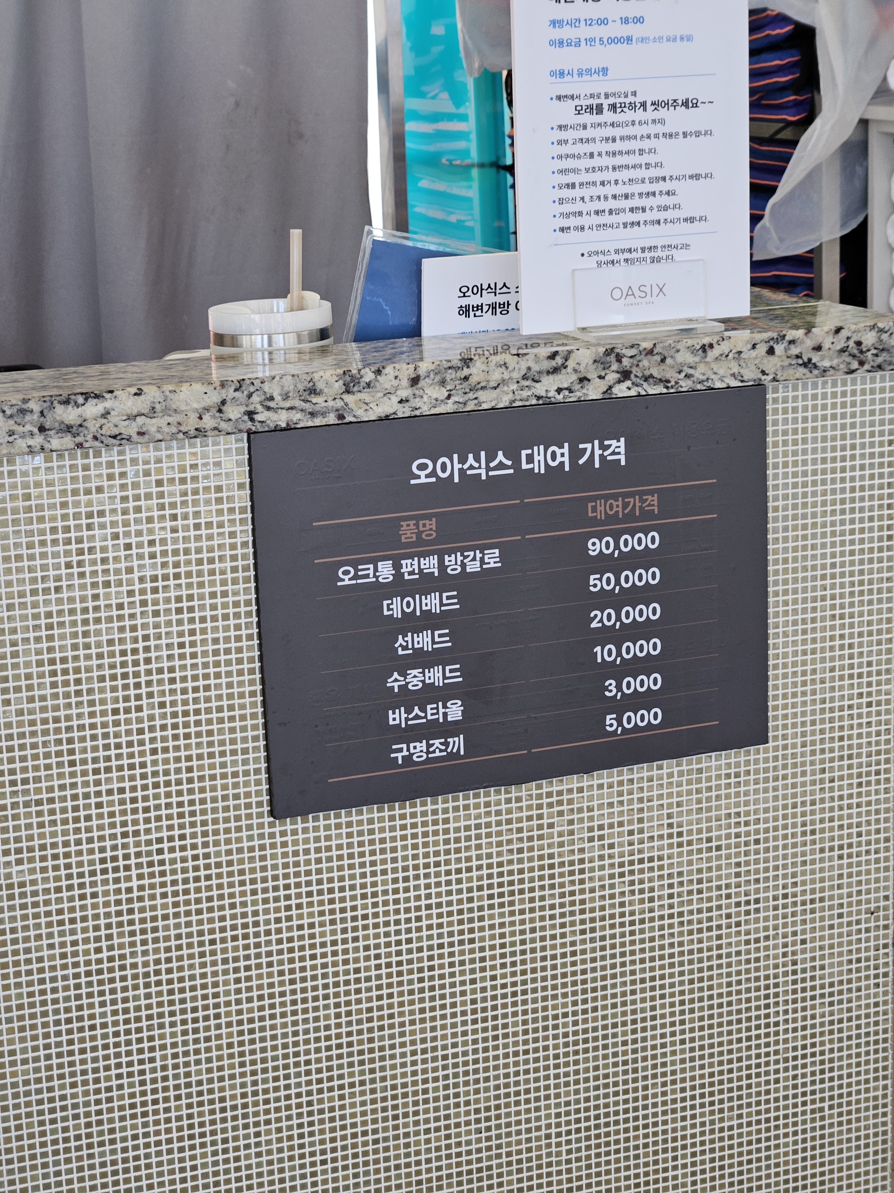 방갈로, 배드, 타올, 구명조끼 등도 못챙겨 가신 분들은 비용을 지불하면 대여가 가능해요.