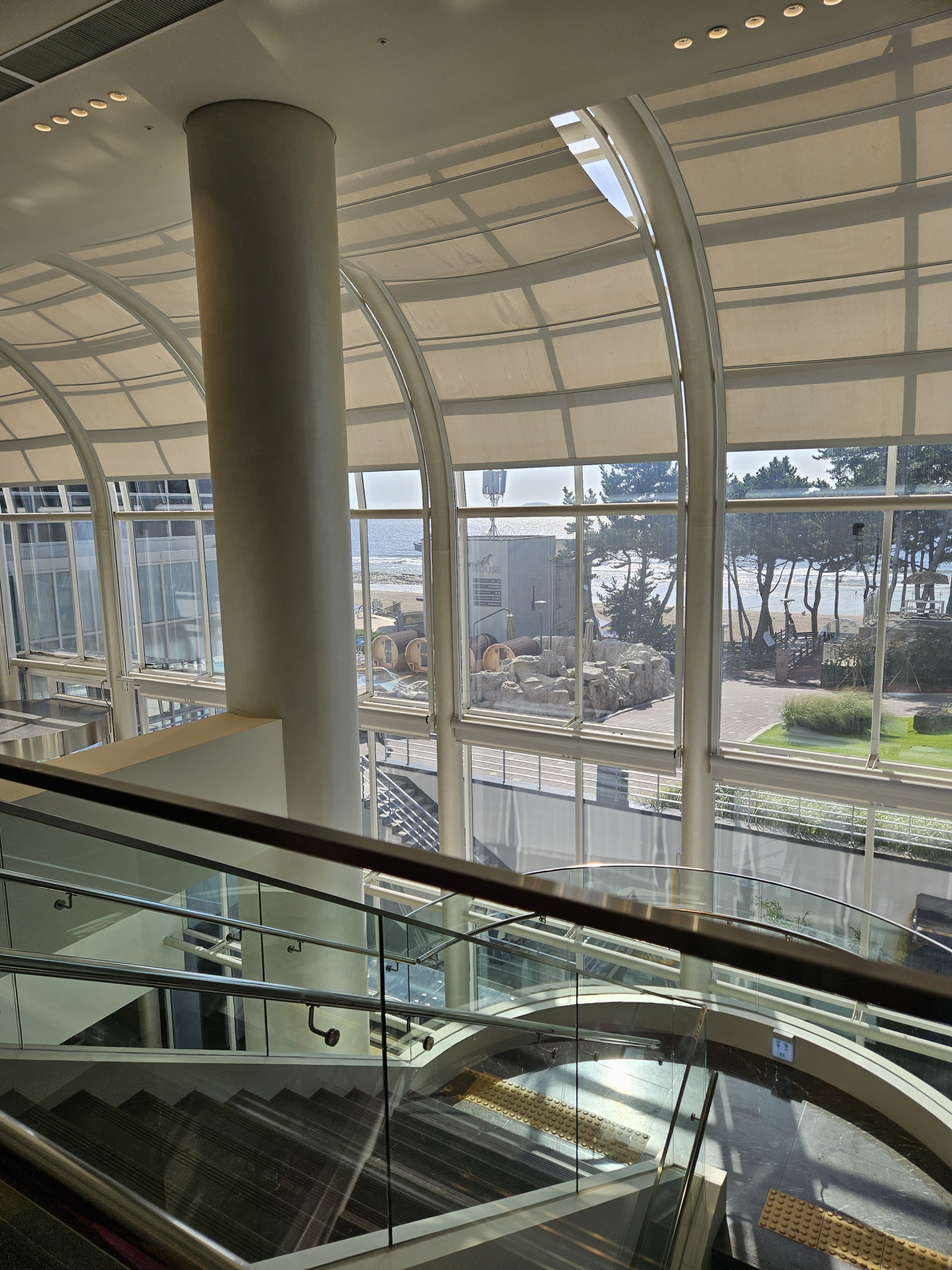저희는 오늘 오후 늦게 도착해서 수영은 다음날 하고 해수욕장에 가서 선셋을 보기로 했어요. 1층으로 가서 회전문으로 나가면 바다로 이어지는 길이 나와요.
