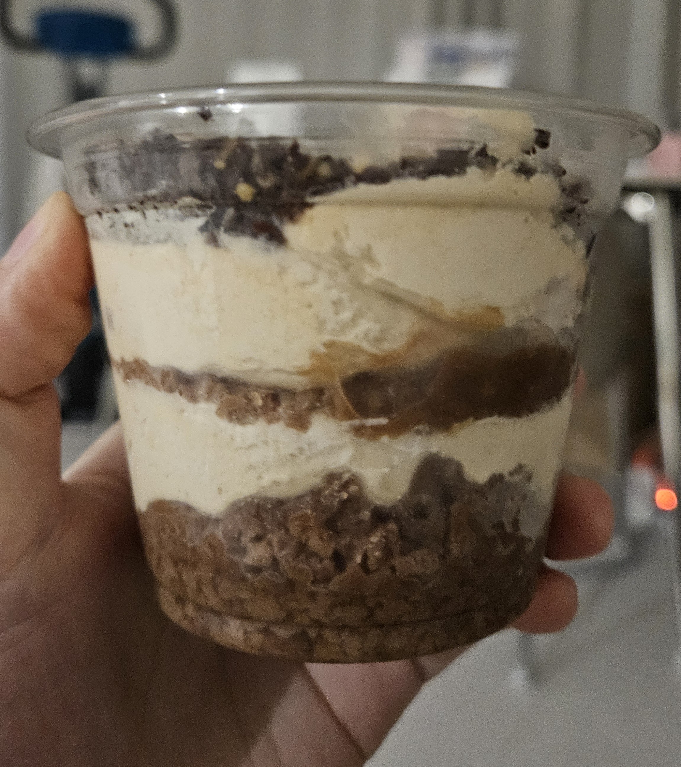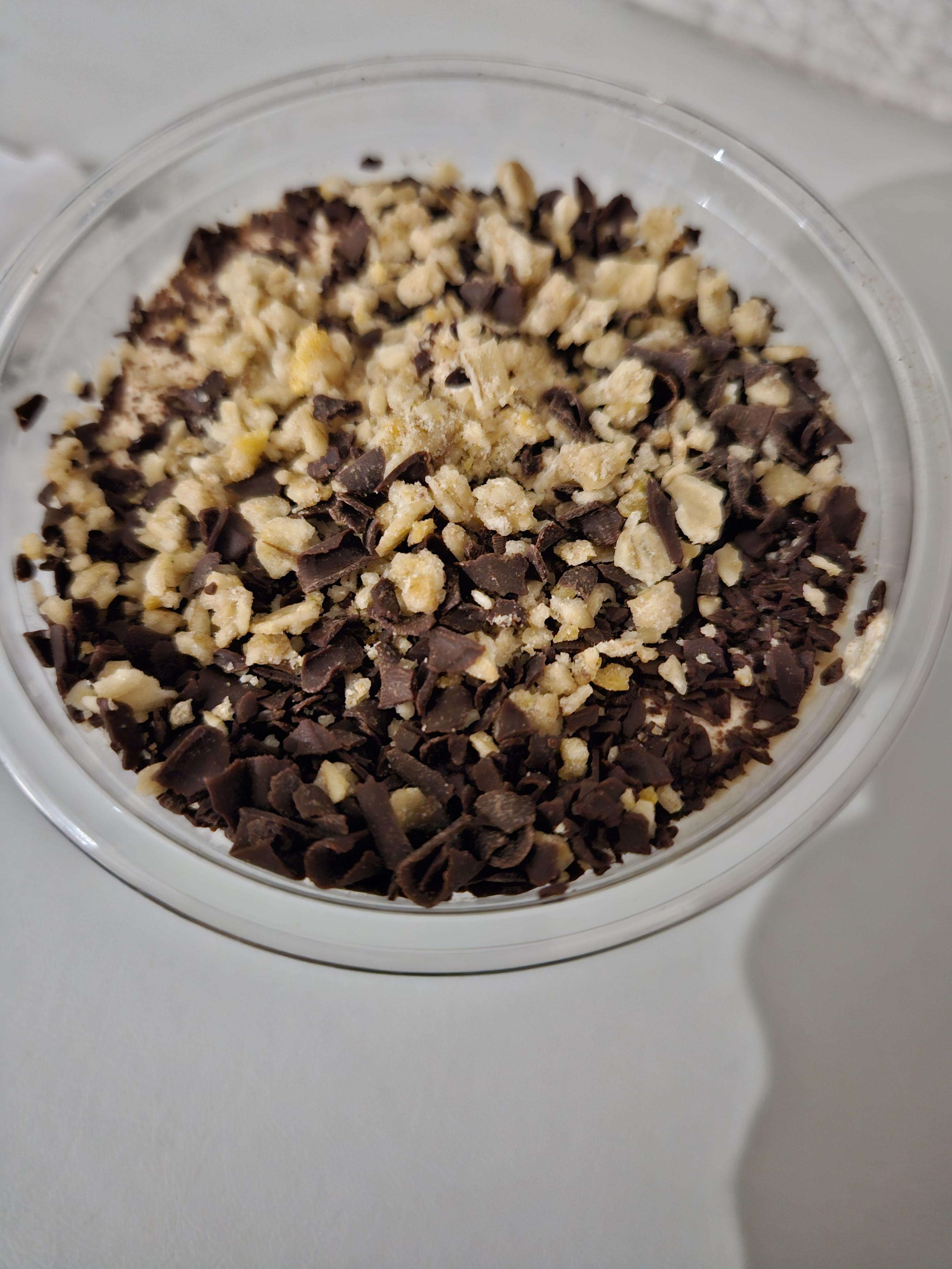 윗쪽에는 그래놀라와 초콜릿 토핑이 올라가있다